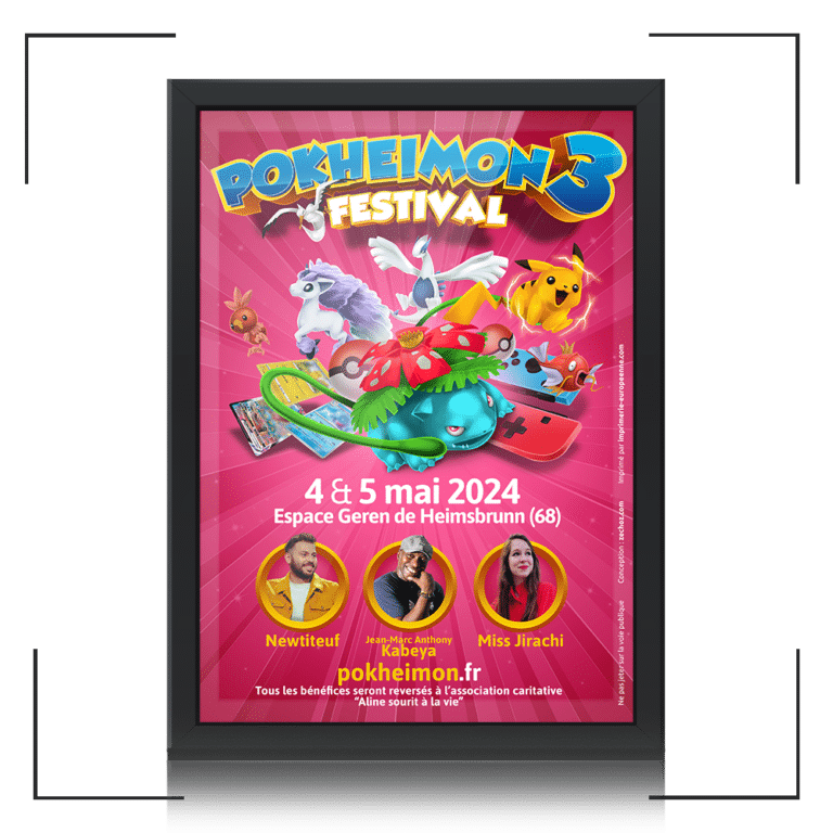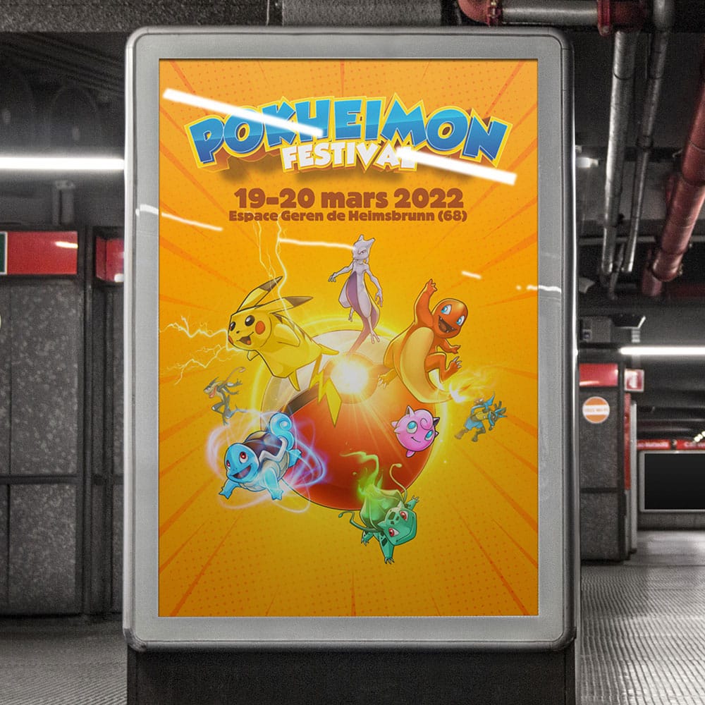 Pour le festival Pokheimon de Heimsbrunn, un événement célébrant la culture Pokémon et s’adressant à un large public familial, nous avons conçu une série d’affiches immersives et captivantes. Ces créations visuelles, entièrement inspirées de l’univers Pokémon, visaient à séduire à la fois les passionnés et les novices, tout en reflétant l’esprit ludique et intergénérationnel de l’événement.