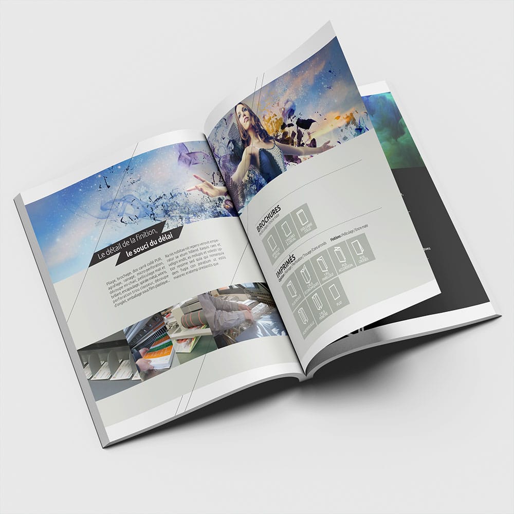 Conception graphique d’une brochure commerciale pour la société d’impression numérique Brochure Sprintcolor.