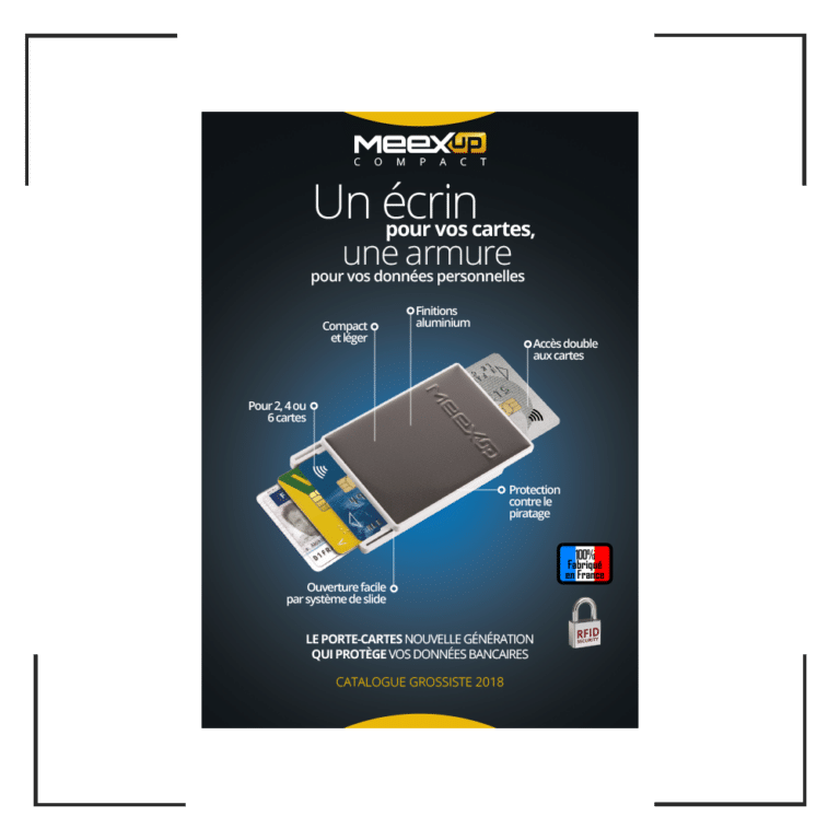 Pour la marque Meexup , spécialisée dans la création de boîtiers de protection pour cartes à puces, nous avons conçu une série de brochures et de catalogues qui mettent en valeur leur expertise et la qualité de leurs produits.