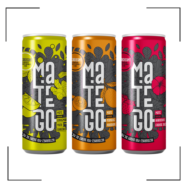 Pour Matego , nous avons conçu une gamme de cannettes énergisantes, déclinées sur trois parfums distincts. Chaque parfum se distingue par un code couleur spécifique , créant une identité visuelle claire et cohérente tout en facilitant l’identification des saveurs pour les consommateurs.