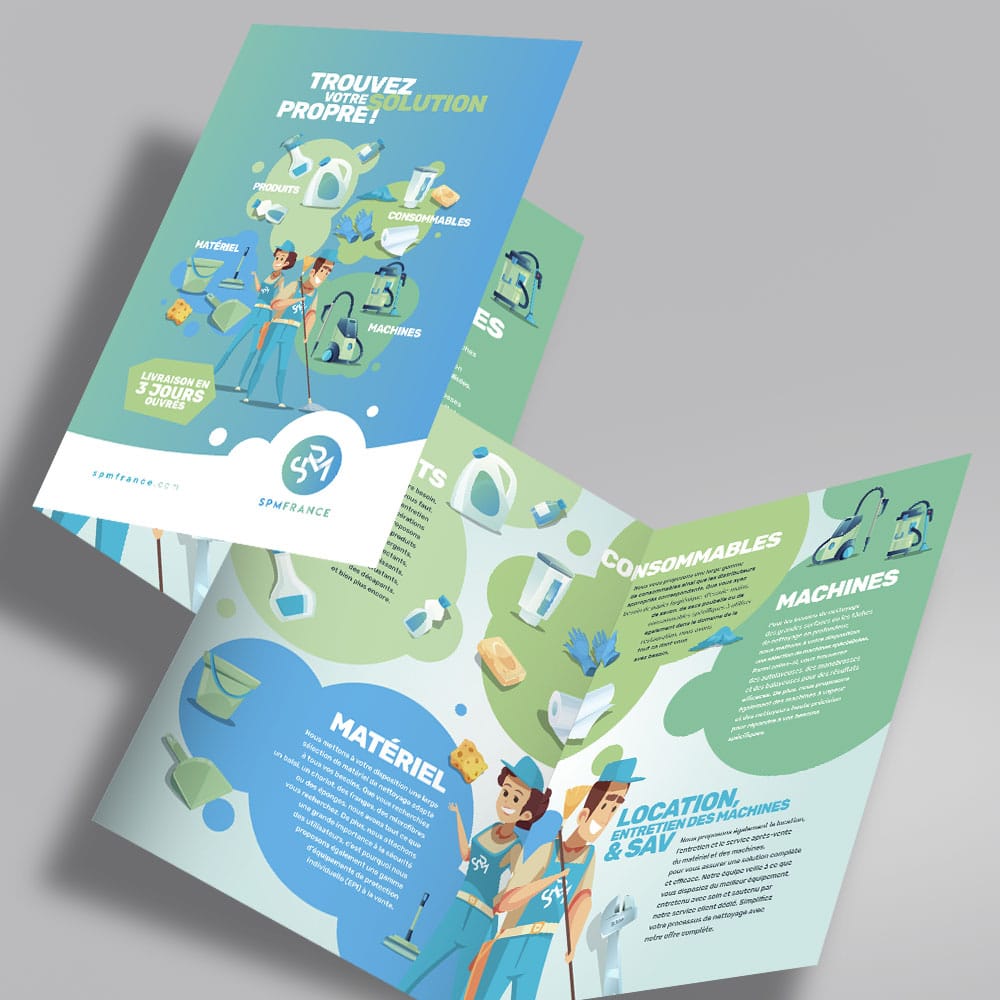 Nous avons créée la nouvelle identité visuelle de la société de nettoyage SPM France à Mulhouse.