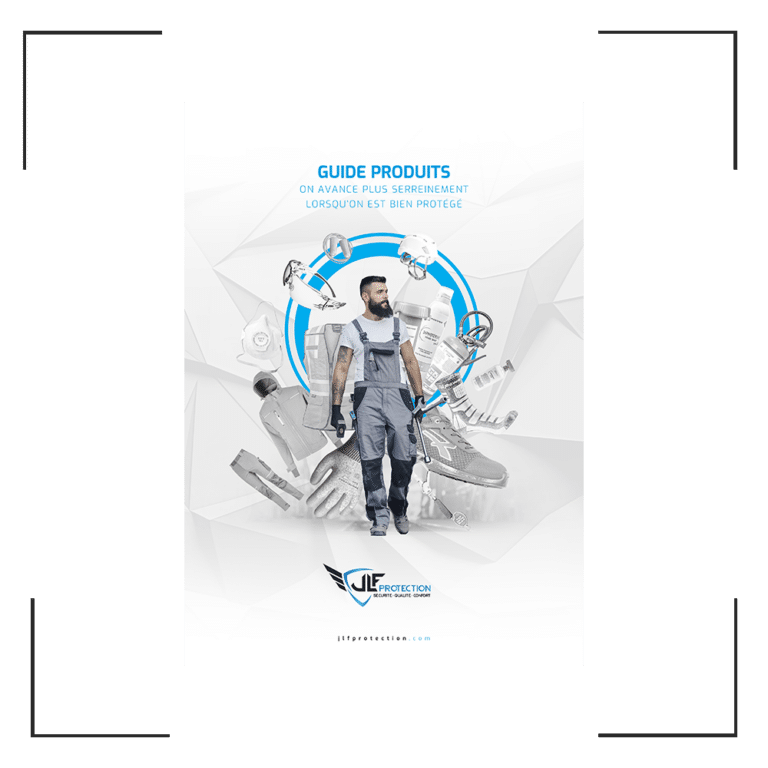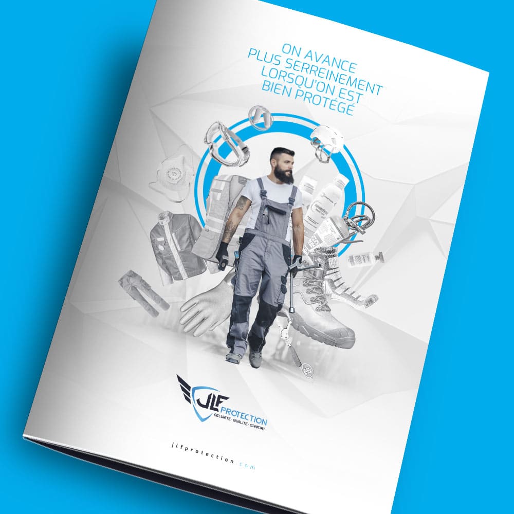 Pour JLF Protection , une entreprise spécialisée dans la vente de matériel et de vêtements professionnels, nous avons conçu une plaquette commerciale à trois volets, alliant esthétique et praticité.