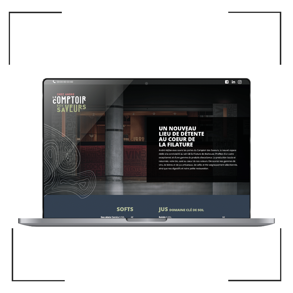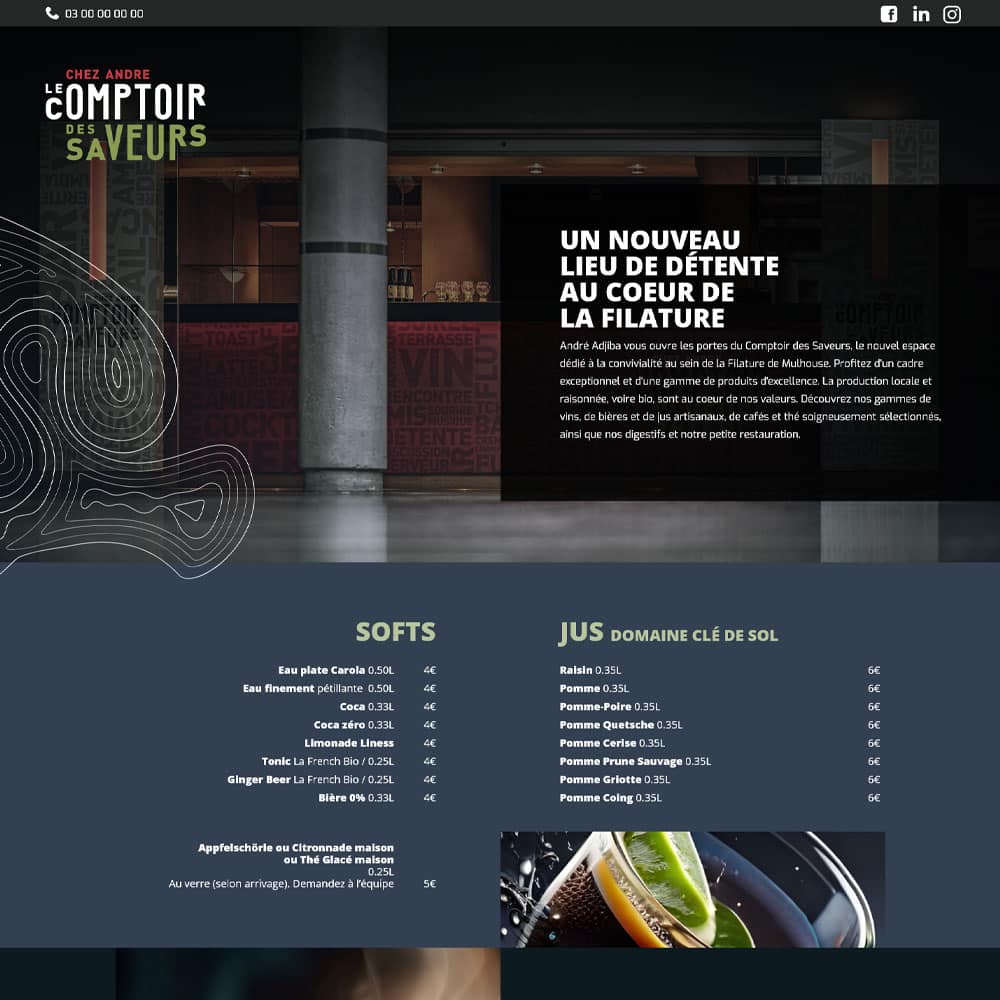 Pour Le Comptoir des Saveurs , nous avons conçu un site monopage moderne et intuitif, pensé pour refléter l’ambiance conviviale et culturelle du bar situé au cœur de La Filature à Mulhouse.