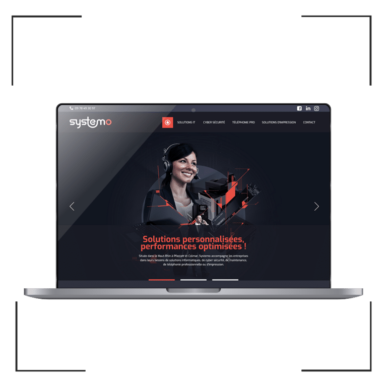 Pour Systemo , nous avons conçu un site internet moderne et intuitif, pensé pour refléter leur identité visuelle dynamique et leur positionnement en tant qu’experts en informatique de proximité.